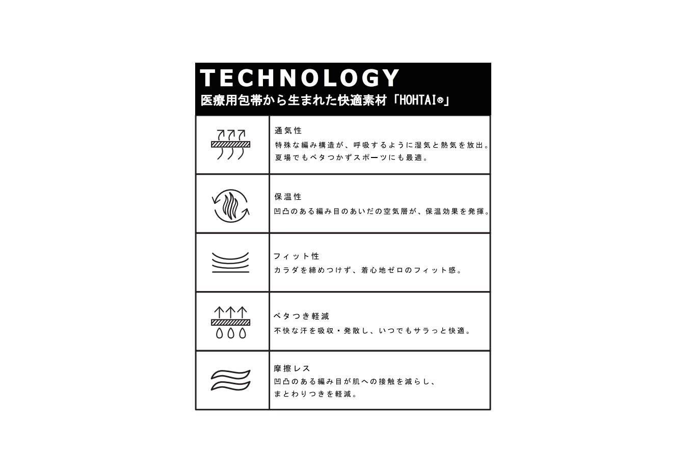「おっちゃんパンツ」とは・・・ 医療用包帯をベースに開発された『HOHTAI®』素材(Rogin Inc.)を使用しています。 商品説明特許取得のHOHTAI®〈ホウタイ〉素材(Rogin Inc.)の伸縮性と通気性を活かし |