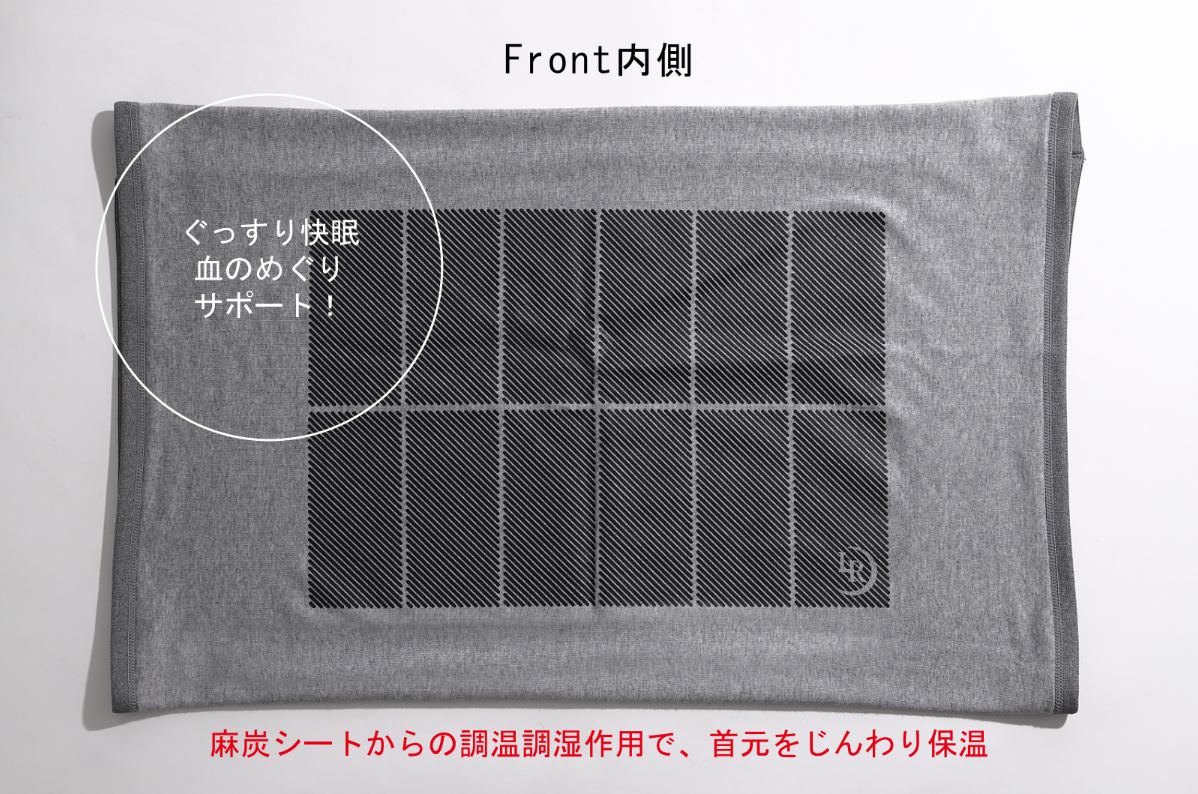 この枕カバーの内側にはCosmic hemp社の、麻炭パウダーを含んだプリントシートを加工しています。